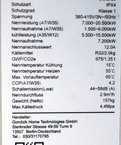 Angeboten wird eine neue Inverter Wärmepumpe mit in stand gesetztem Transportschaden des Typs Gondzik Delta 20 mit 20 KW Maximalleistung (Baujahr 2022).