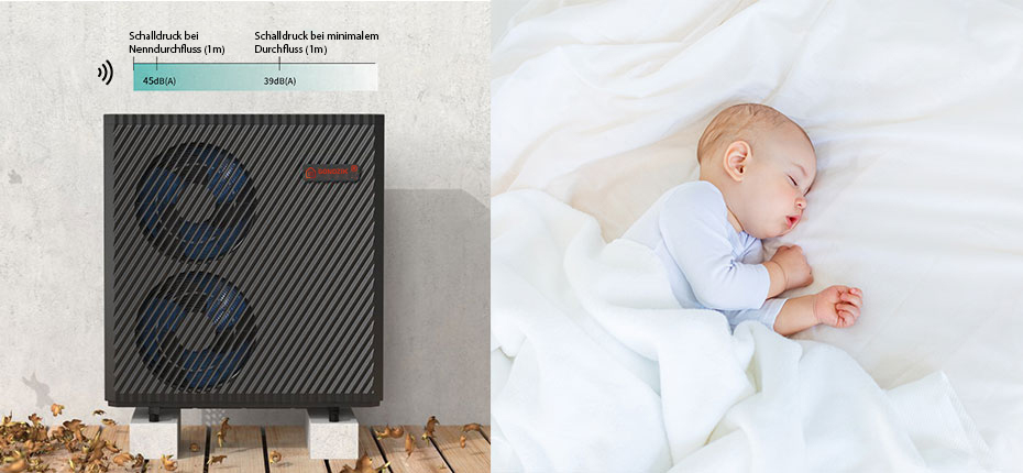 Durch die Bauform und die eingesetzten Komponenten in Verbindung mit einer intelligenten Steuerung, ist die Wärmepumpe Flüsterleise. Sie besitzt einen Nachtmodus, in dem die Lüfter nahezu nicht mehr hörbar sind.