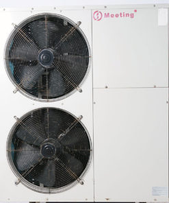 Angeboten wird eine gebrauchte und getestete Inverter Wärmepumpe des Typs Meeting MD60D. Diese Wärmepumpe war ca. 4 Jahre in Gebrauch (Baujahr 11 / 2016). Der Verdichter wurde gegen einen neuen Verdichter ausgetauscht. Die Wärmepumpe wurde vor dem Verkauf nach Herstellervorgaben gewartet und in Stand gesetzt. Diese Wärmepumpe hat eine Gewährleistung von 1 Jahr ab Lieferung. Die Luft Wasser Wärmepumpe MD60D von Meeting ist eine statische Scroll Wärmpumpe ohne Leistungsregelung mit einer Maximalleistung von 21 KW. Sie verfügt über eine einfache Steuerung, die im Hausinneren eingebaut wird und mit der dann die Solltemperatur eingestellt wird. Die Wärmpumpe schaltet sich ein und läuft solange, bis im Pufferspeicher die eingestellte Temperatur erreicht wird. Nach dem Ausschalten, schaltet sich die Wärmpumpe dann erst wieder ein, wenn die Hysteresetemperatur überschritten wird. D.h. die Temperatur um die der Speicher von der eingestellten Solltemperatur abweichen darf. Näheres zu den Einstellmöglichkeiten finden sie in der Anleitung.