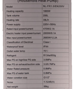 1x Wärmepumpe NL-FR1.0/EN 300V mit Steuerung (Befüllt mit Kältemittel, Anschlussfertig)